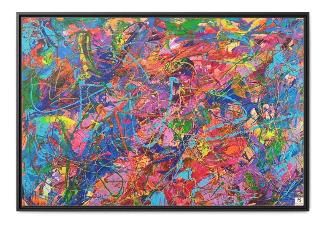 #182 Electric Storm is where abstract art becomes wearable. Every brushstroke from the original painting is printed in vivid, gallery-quality detail across premium waterproof canvas.